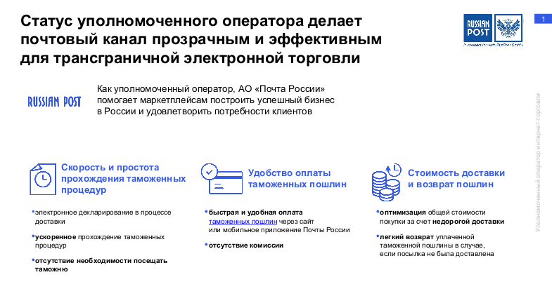 Мы предлагаем индивидуализированные решения для международной почтовой пересылки в Россию. Действуя как мультимодальный логистический концерн с широкой сетью отделений и имея прочные позиции как в России, так и в Европе, мы укрепляем связь между Россией и Европой.
